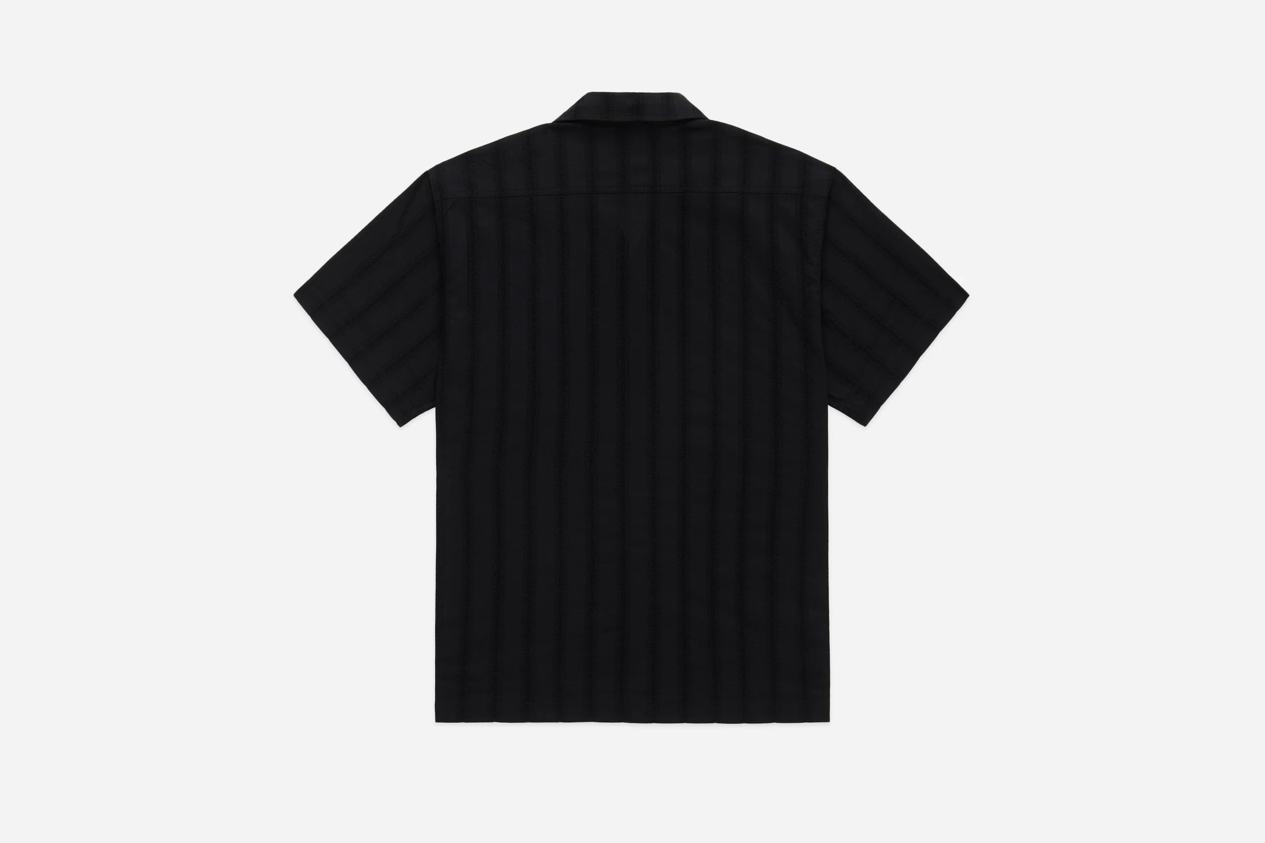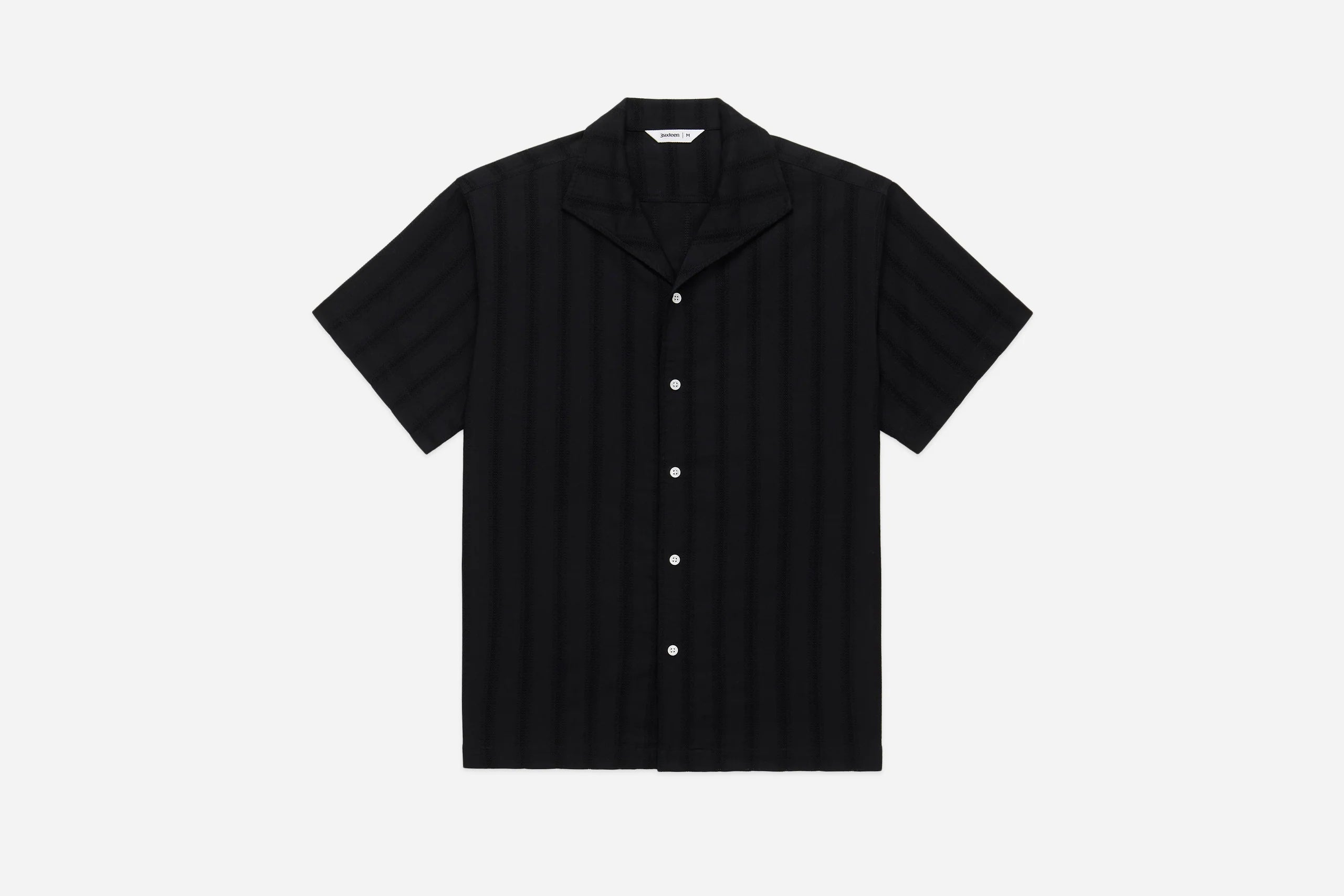 The Leisure Shirt, as crafted by 3Sixteen, is modeled after vintage 1950's open-collar vacation shirts. This iteration utilizes a Japanese striped lace weave with a truly beautiful texture. The shirt is finished with mother of pearl buttons.