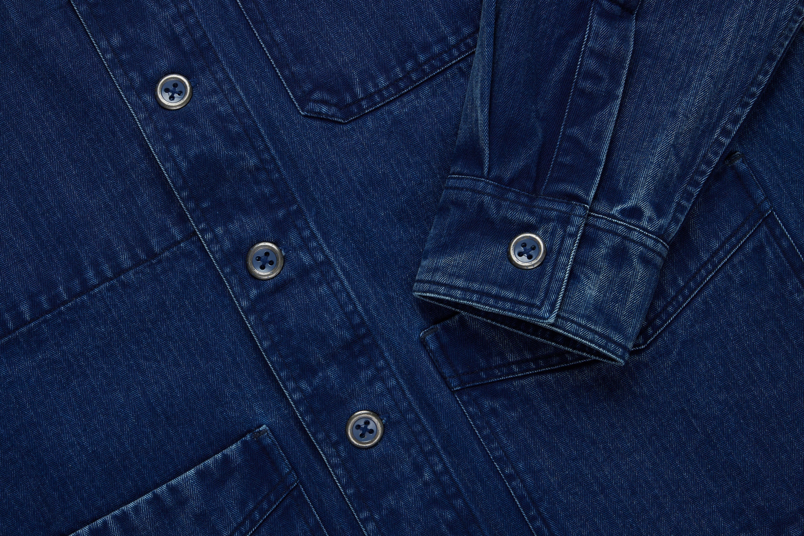 The collar has the traditional rounded shape found on the pieces 3Sixteen referenced while creating this jacket, along with an interior pocket and three large exterior front pockets. The fabric is a heavyweight Japanese indigo HBT that has been bleached and stonewashed to give the look and feel of the old French examples found in their archives. 3Sixteen finished the jacket with metal painted buttons that have been tumbled in a drum to mimic the look of vintage workwear buttons that have faded from use over time. To the untrained (and maybe even trained) eye, this jacket looks like it is decades old, but is actually something new and ready for decades of wear to come.